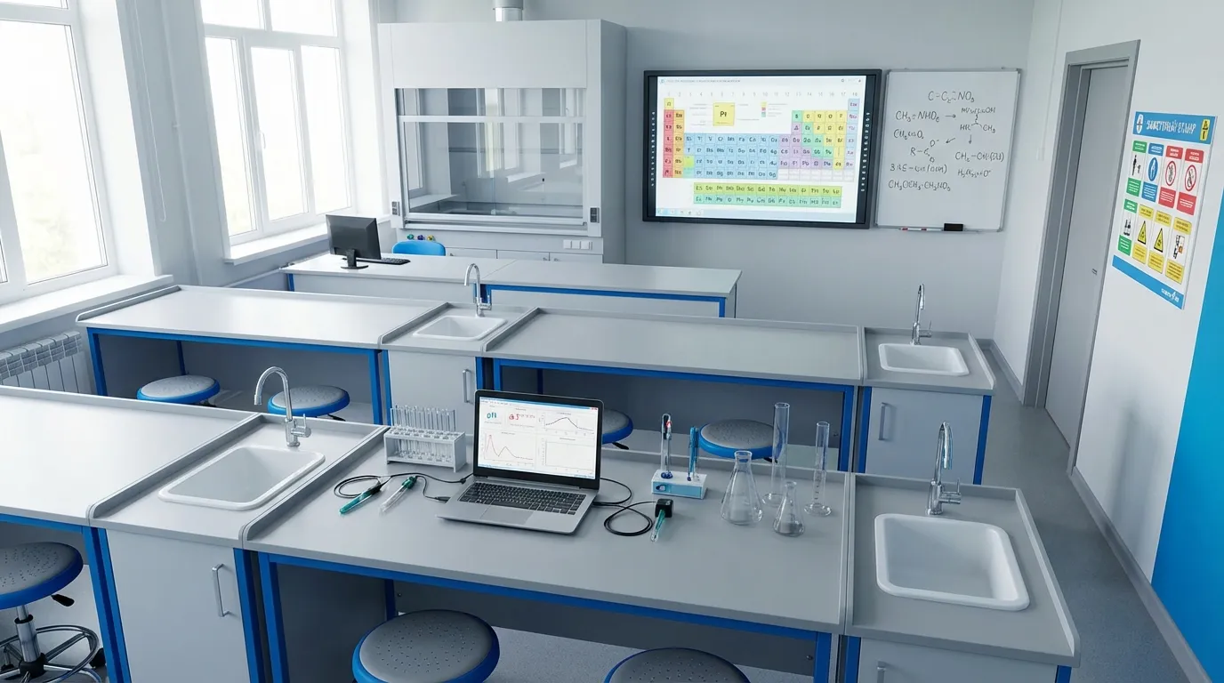 Ошибка 2. Экономия на мебели. Стандартные школьные парты не подходят для кабинета технологии (нужна увеличенная глубина, кабель-каналы, верстачные зоны) и для кабинета химии (нужно химически стойкое покрытие, раковины). Установка цифровой лаборатории на обычную парту — компромисс, который скажется и на безопасности, и на удобстве работы.