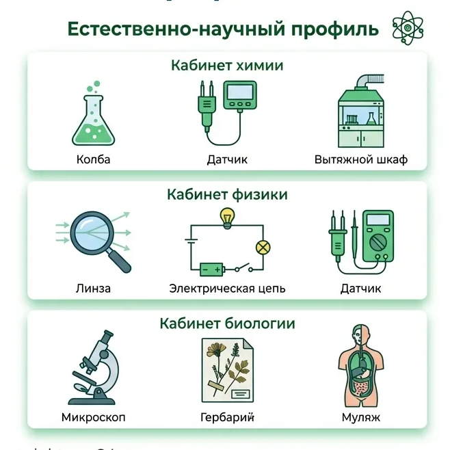 Естественно-научный профиль: полный перечень по кабинетам